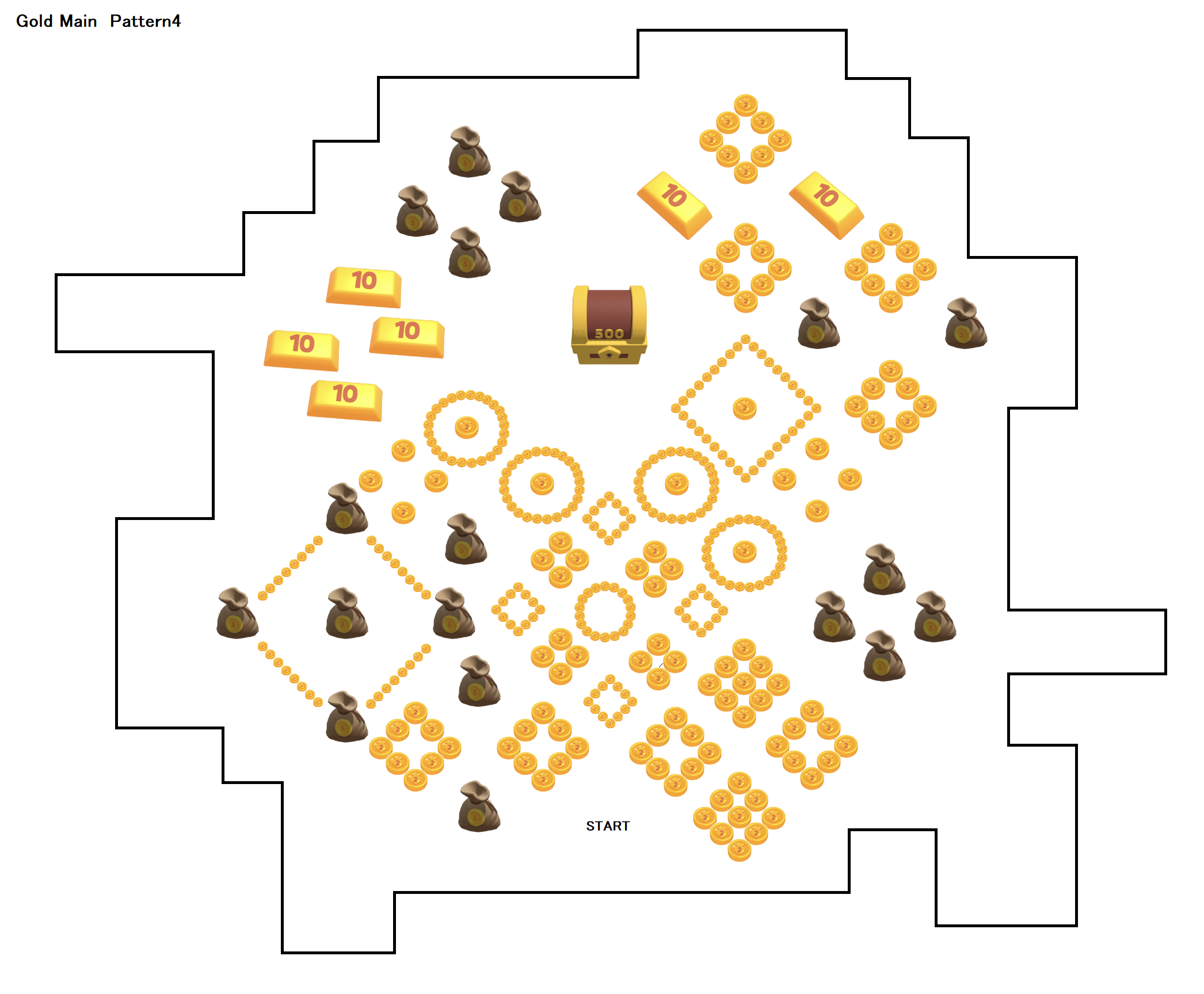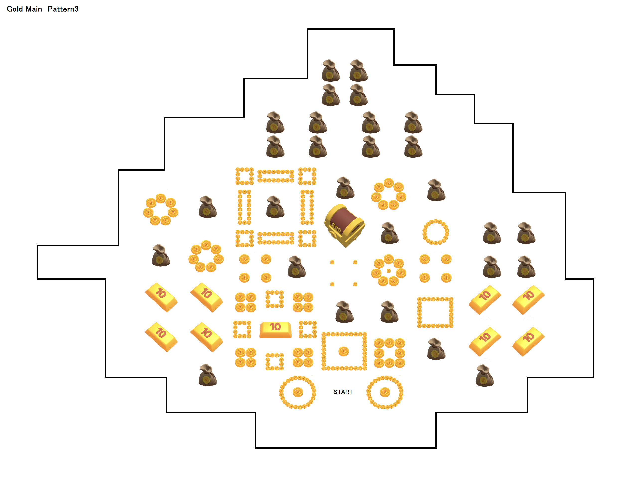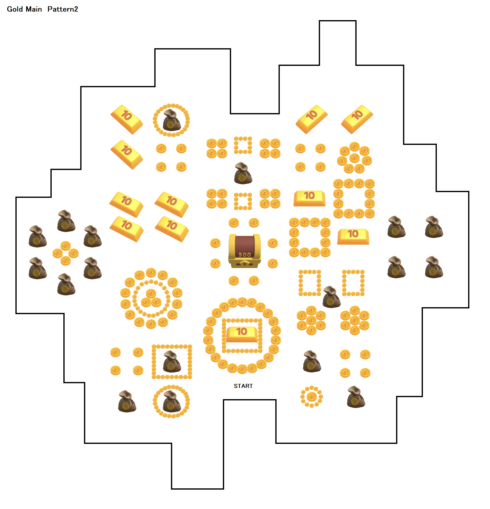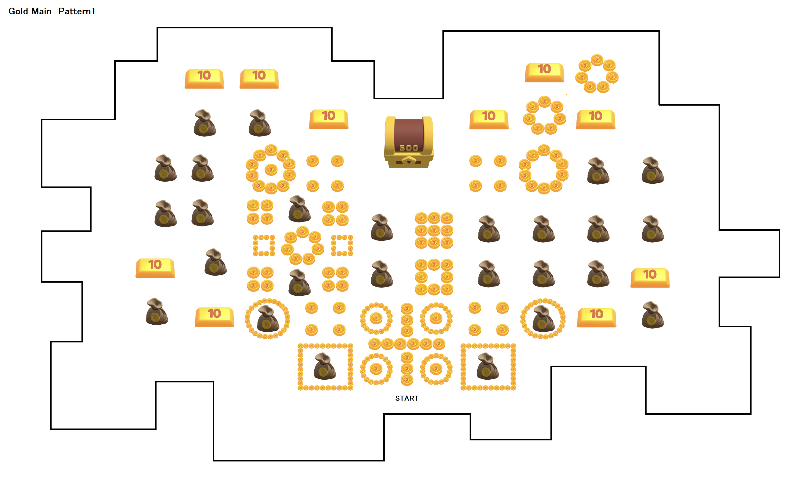 All_In_Hole攻略 ゴールドマイン/Gold_Main解答を掲載しています。| ステージをクリアして一定レベルに到達するどコインをたくさん集めることができる ボーナスゲームに相当するゴールドマインがプレイできます。 (厳密にはもらえるコイン数は少ないですが…) ゴールドマインのSTART地点で周囲にあるコインのレイアウトを確認して 下記のパターンから同じものを探します。 該当するパターンのボタンを押すとクリアできるルートの動画が再生されます。 ゲーム上のホールを動かす前であればタイムのカウントが始まらないので 先にクリアできるルートの動画を確認してみましょう! 全体MAPをクリックすると配置されているコインのステージ全体の画像を見ることができます。 ボタンを選択すると動画が自動再生されます。固定回線やWIFIで鑑賞を推奨します。 (音声が流れますので音量に注意してください) |