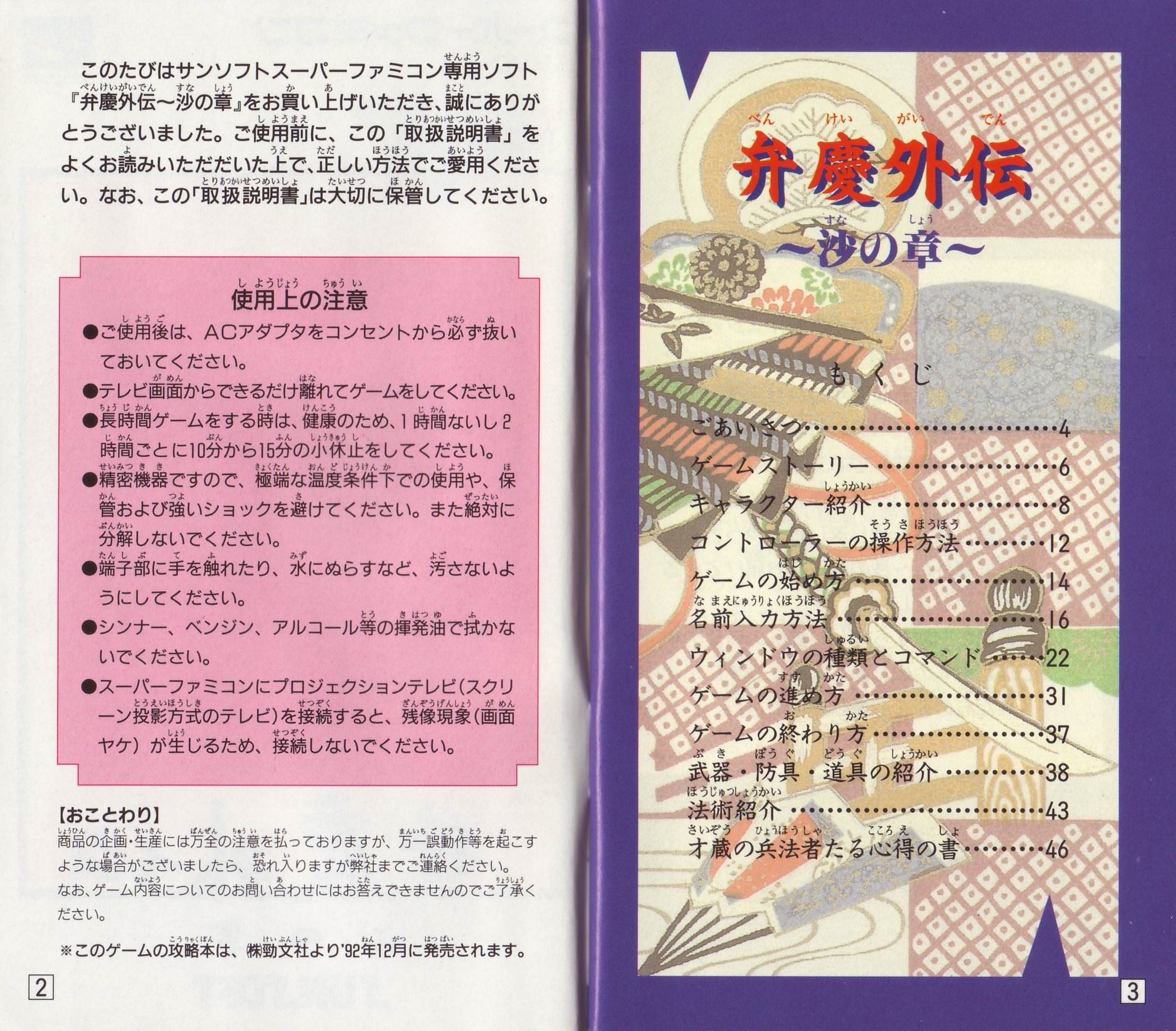 HOME > 弁慶外伝 沙の章 攻略TOP > 取扱説明書