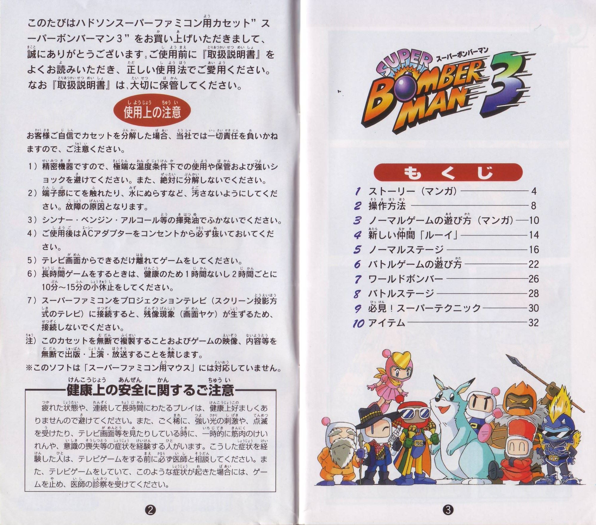 HOME > スーパーボンバーマン3 SUPER BOMER MAN3 攻略TOP > 取扱説明書