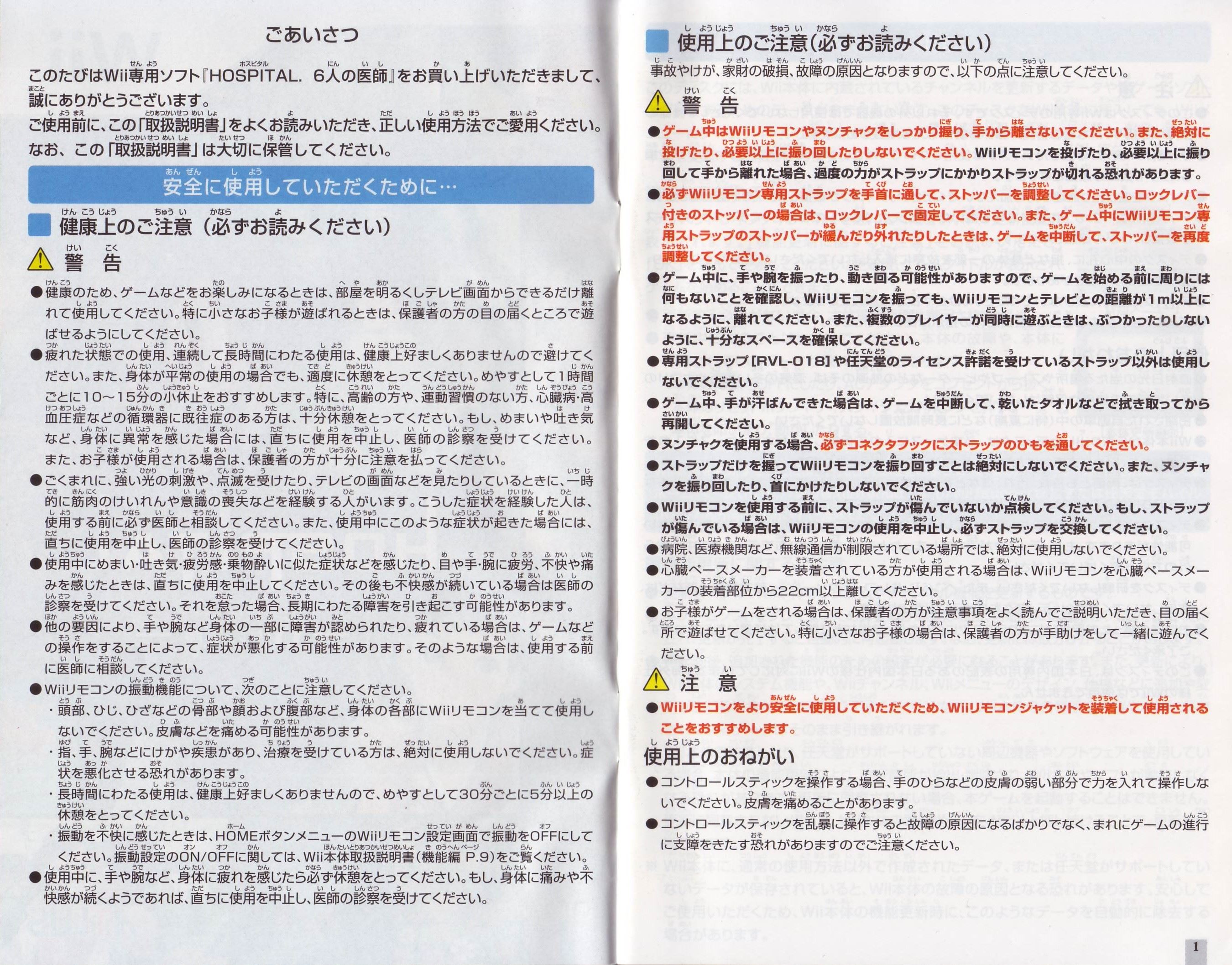 HOME > HOSPITAL.6人の医師攻略TOP > 取扱説明書