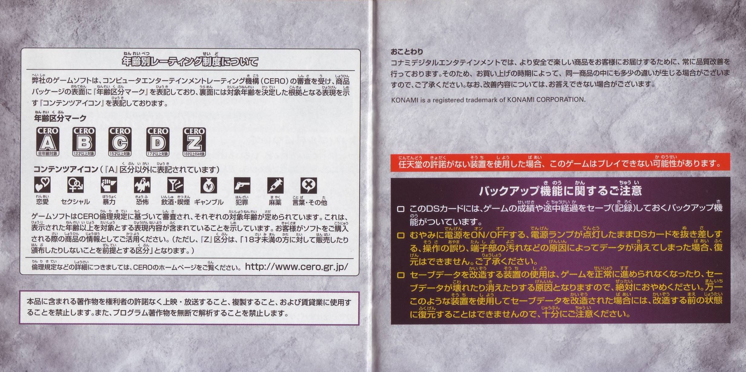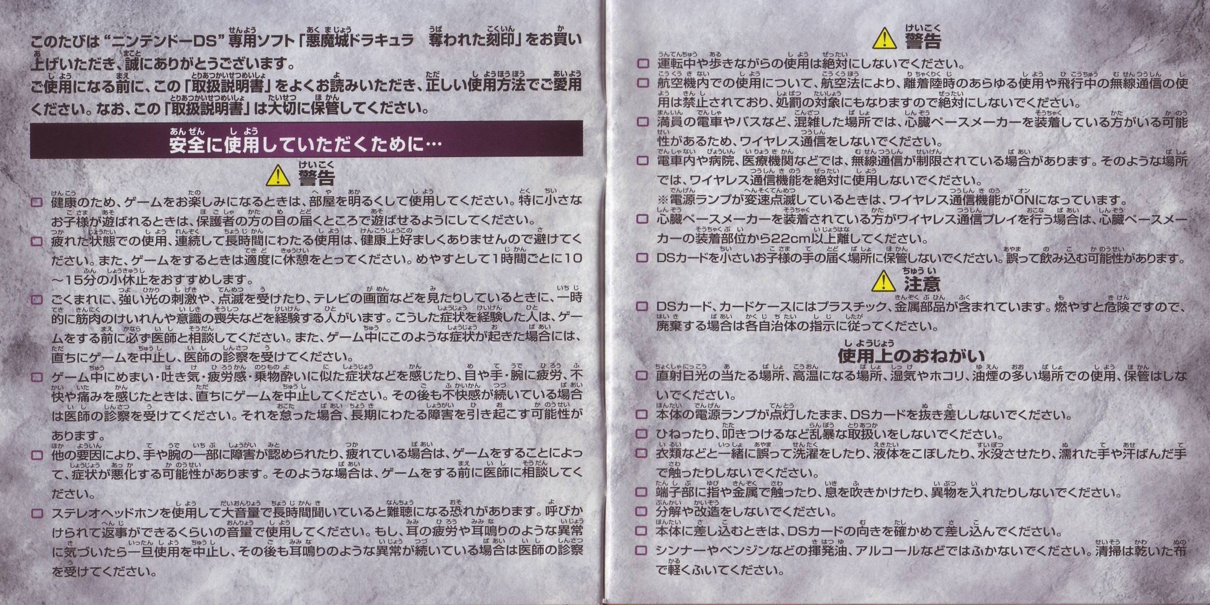 HOME > 悪魔城ドラキュラ 奪われた刻印攻略TOP > 取扱説明書
