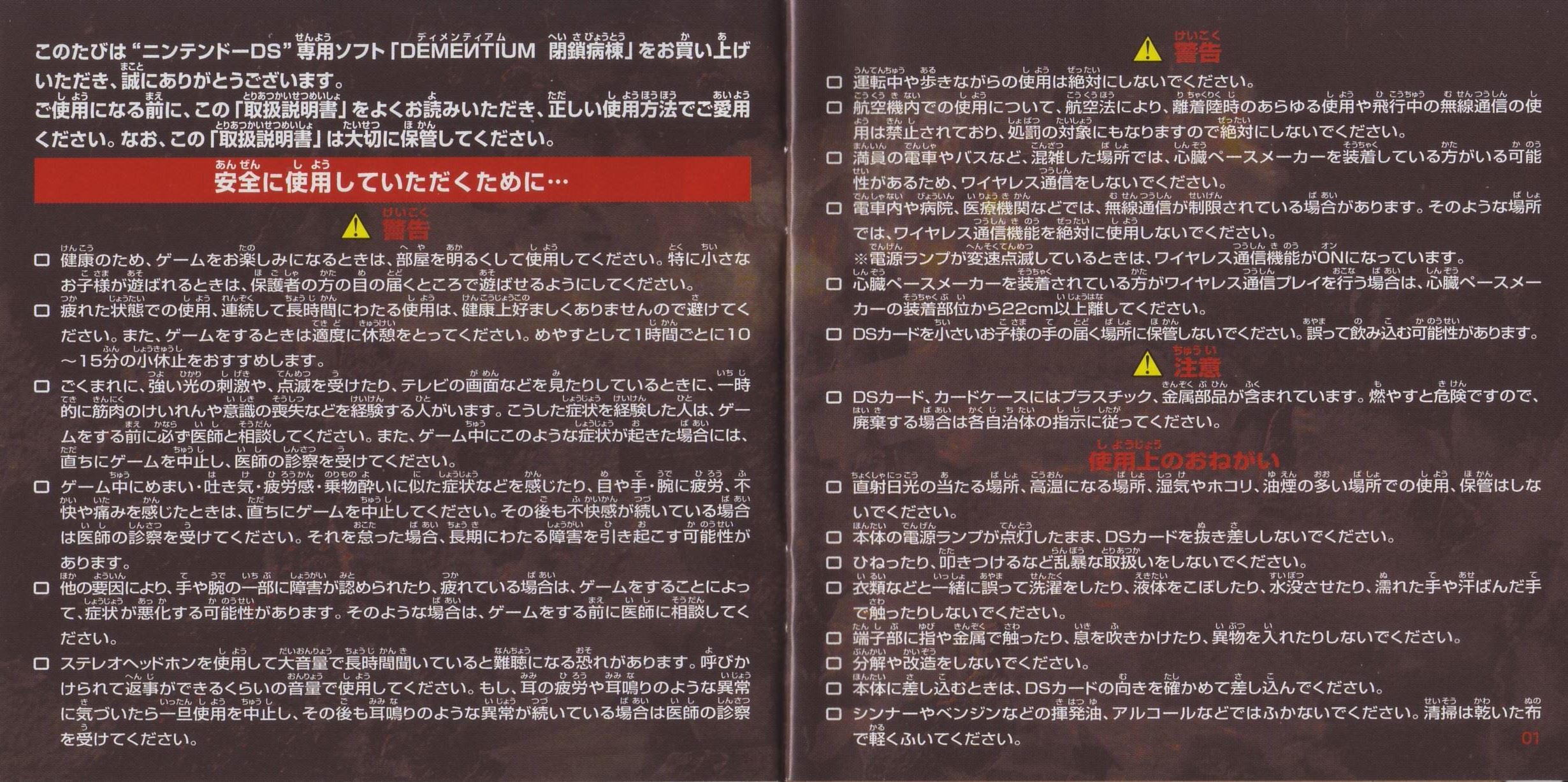 HOME > DEMENTIUM 閉鎖病棟攻略TOP > 取扱説明書