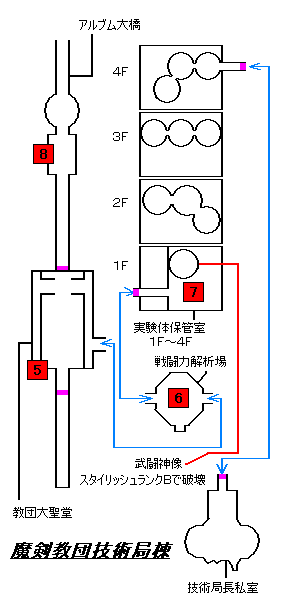| 強制戦闘 エネミー軍団を倒す ↓ 時間に余裕があれば実験体保管室にいる武闘神像を破壊して ブルーオーブを入手してもいい |
