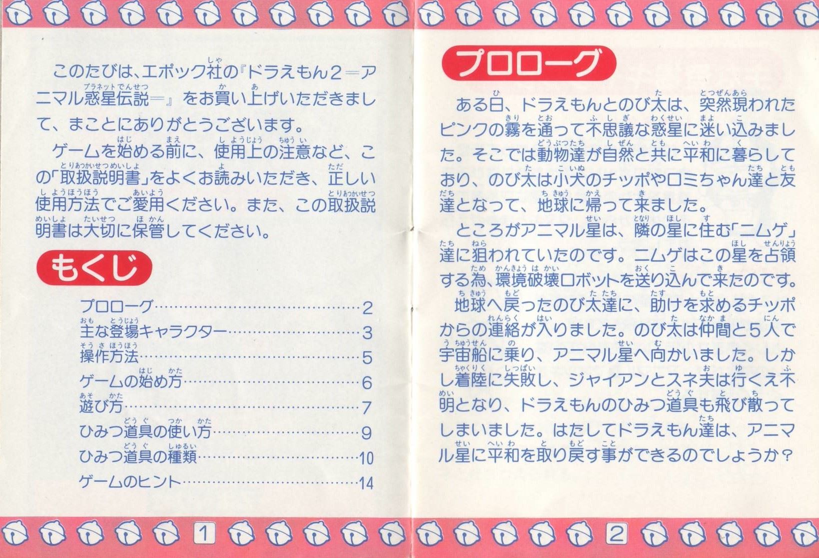 HOME > ドラえもん2 アニマル惑星伝説 攻略TOP > 取扱説明書