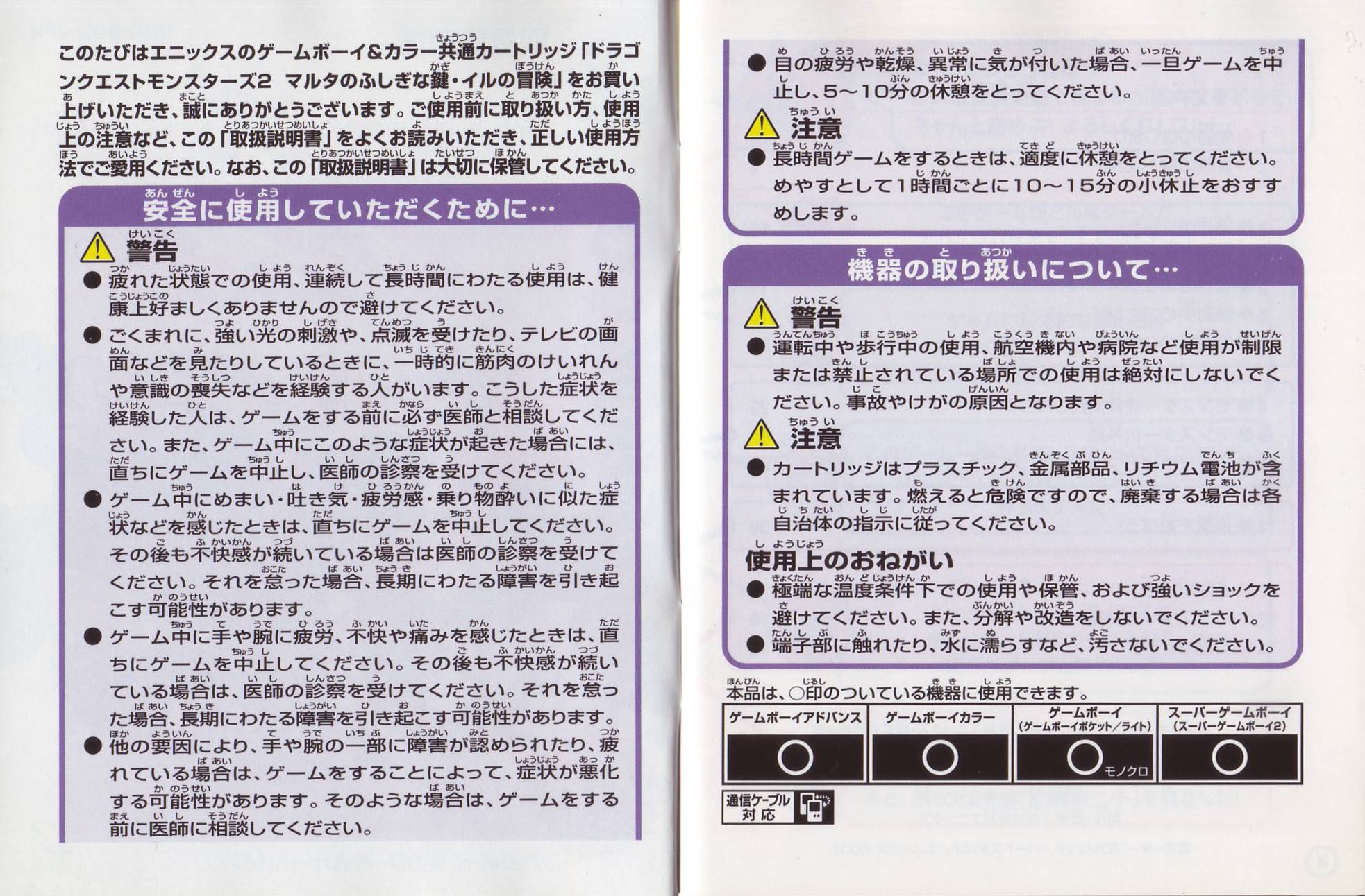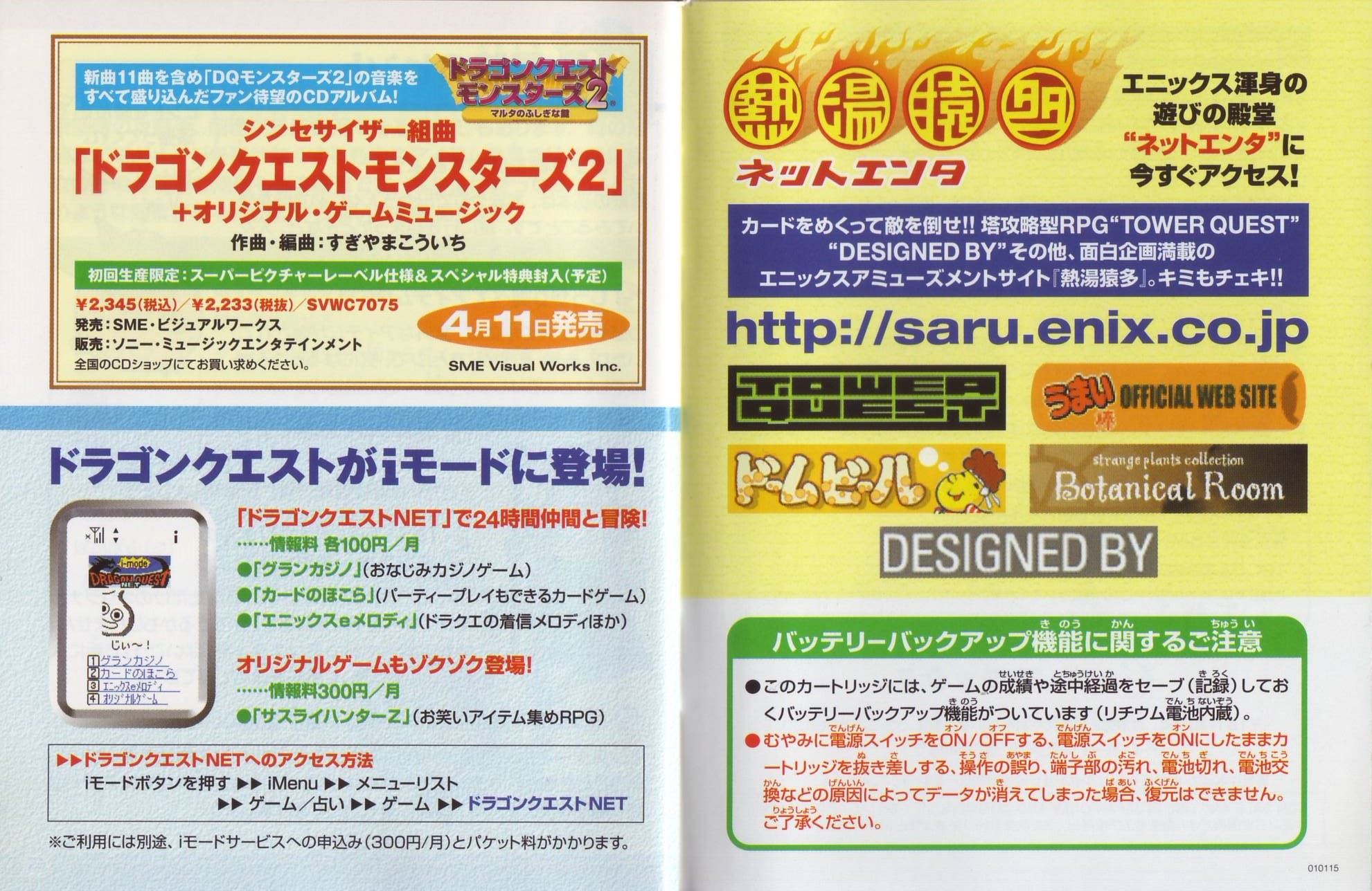 HOME > ドラゴンクエスト モンスターズ2 マルタのふしぎな鍵 イルの冒険 攻略TOP > 取扱説明書