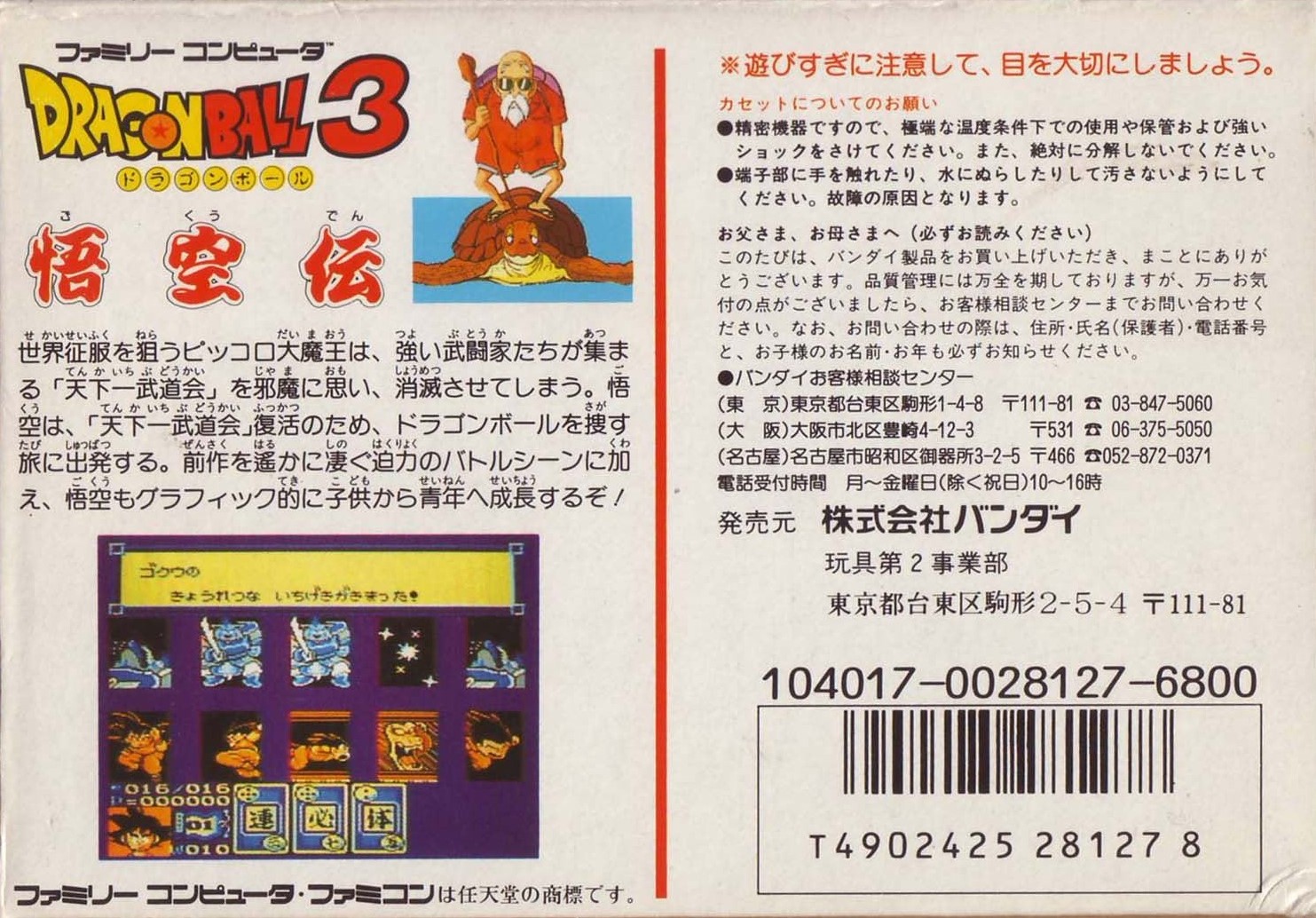 HOME > ドラゴンボール3 悟空伝攻略TOP > 取扱説明書