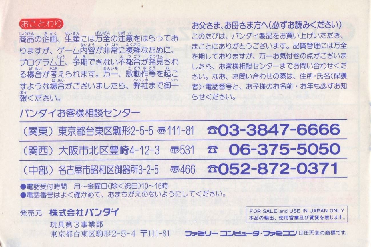 HOME > ドラゴンボールZ3 烈戦人造人間 攻略TOP > 取扱説明書