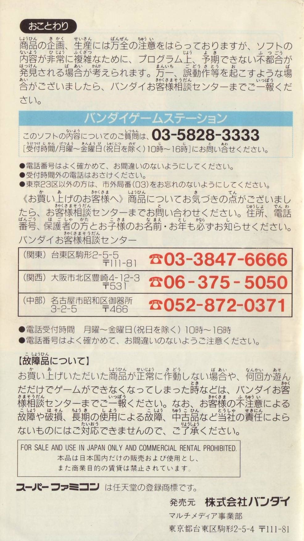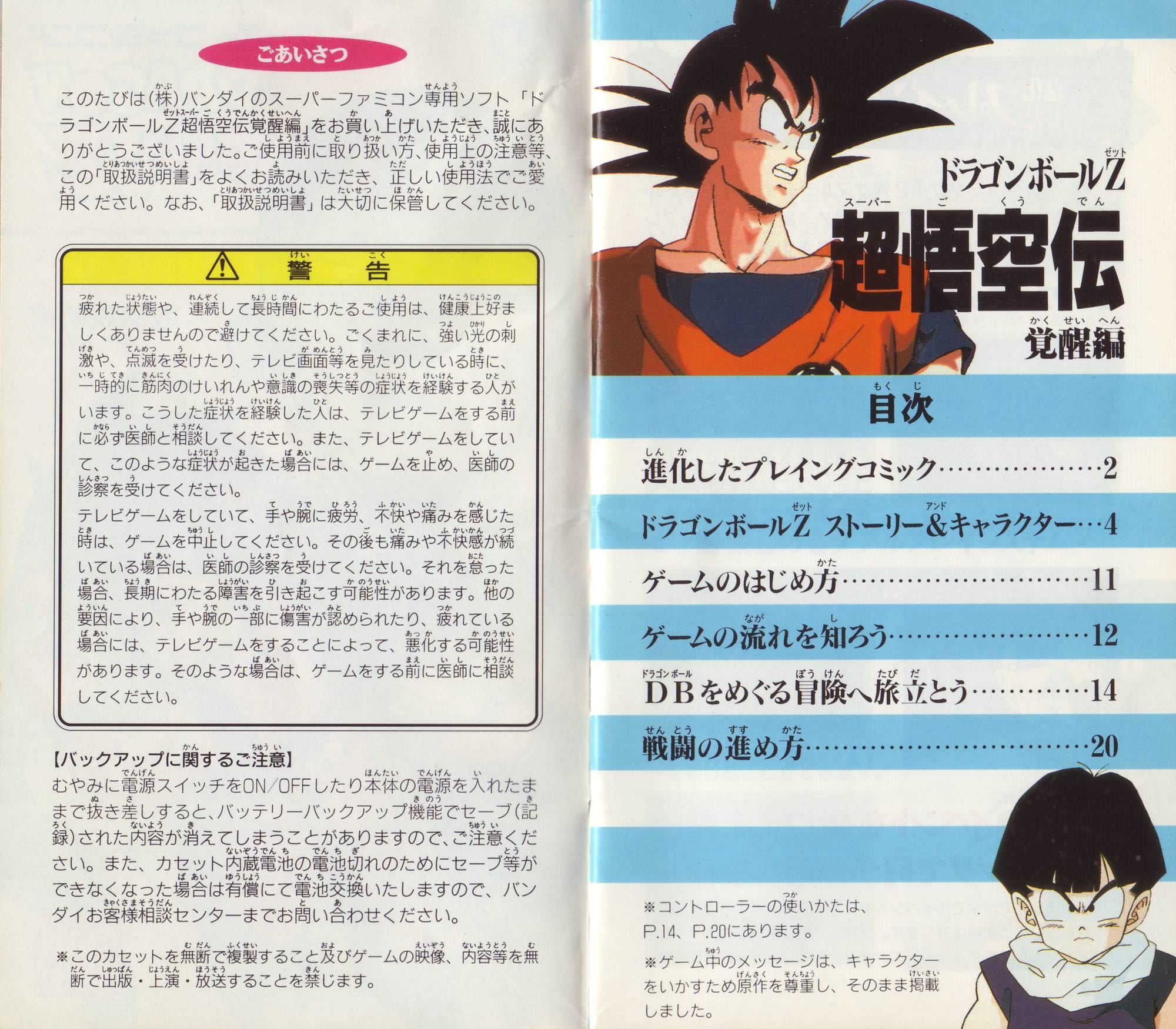 HOME > ドラゴンボールZ 超悟空伝 覚醒編 攻略TOP > 取扱説明書