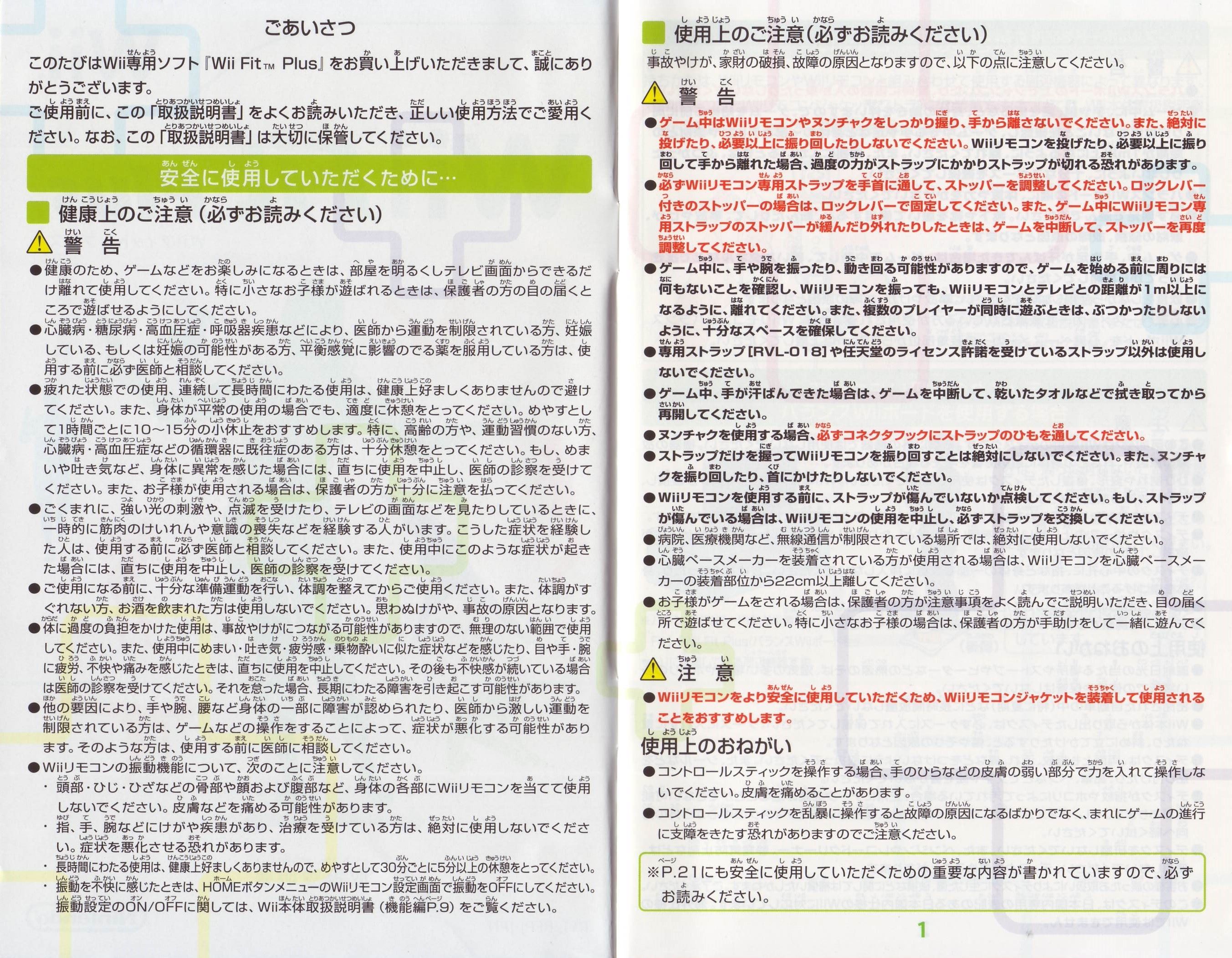 HOME > Wii Fit Plus フィットプラス 攻略TOP > 取扱説明書