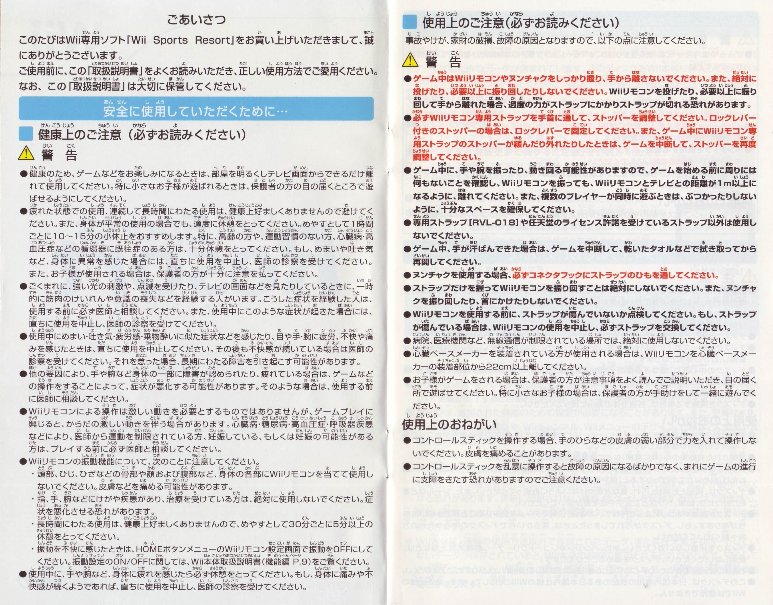 HOME > Wii Sports Resort スポーツリゾート攻略TOP > 取扱説明書