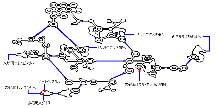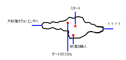 | マップ左にある大砂海オグル・エンサを目指す 出現する敵 なし 入手するアイテム なし ポイント 特になし |