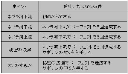 下記ポイントの条件をクリアすると新しく釣りポイントが追加されていく![]()