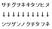 | 暗号文 真実は常にいつわり背後にひそむ サチグヲネキタソヒヌ 解答 サチグヲネキタソヒヌ⇒シツゲンノクチタフネ(湿原の朽ちた舟) 50音の並び順で