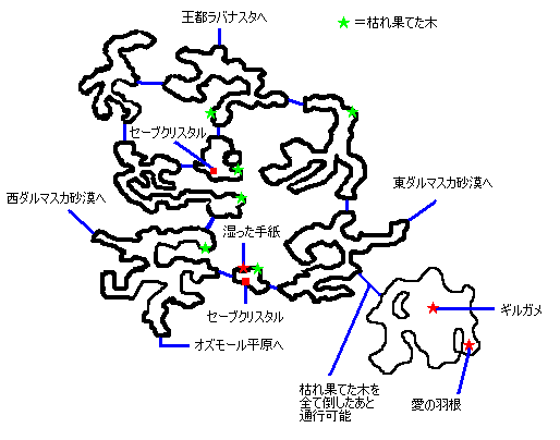 | ギーザ草原(雨季)へ行く ※ ギーザ草原の乾季と雨季の変化の条件はコチラ ↓ ナナウから情報を聞く ↓ 【沈黙の壺】を入手 ↓ 各エリアに1つずつある【枯れ果てた木】を全て倒す ↓ 枯れ木の足場を渡る ↓ バンサトが参戦 ↓ 天気が豪雨+雷になるまで画面を切り替える (この間にトレジャーポットから愛の羽根を入手しておこう) ↓ 出現したら集中攻撃で倒そう バンサトがプロテス・シェル・ドンムブなどの補助魔法で援護してくれます ギルガメのHPが減ってくると【活性】で治療して防御力も上昇する サンダラやサンダガで攻めて倒してしまおう ↓ 湿った手紙を読む ↓ 王都ラバナスタへ戻る ↓ ギーザ草原(乾季)へ行く ↓ 集落でナナウに報告 ※ トレジャーポットから入手した【愛の羽根】のサブイベントはコチラ |