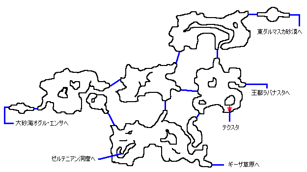 | ラバナスタ(砂海亭)へ行く ↓ ガスリから情報を聞く ↓ 西ダルマスカ砂漠へ行く ↓ テクスタを倒す ↓ ガスリに報告 周囲にいるウルフを先に倒してからテクスタを集中攻撃しよう HPが減るとウルフを呼ばれてしまうため早めに倒してしまおう |