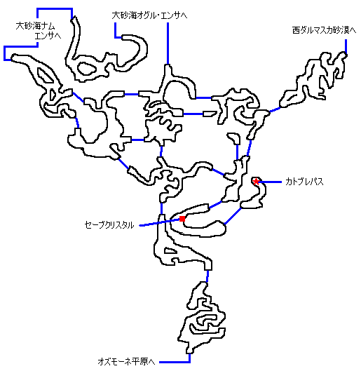 | ガリフ地のジャハラへ行く ↓ 戦士長スピネルから情報を聞く ↓ ゼルテニアン洞窟に行く ↓ セーブクリスタル前の隠し通路へ行く ↓ カトブレパスを倒す ↓ 戦士長スピネルに報告 戦闘開始直後から【HP消費攻撃】を多用してくるため 大ダメージを受けにくくするためくらやみ状態にしておくと安全 カトブレパス自身はプロテス・ヘイスト状態でない時は プロテスやヘイストを優先的に使用するため テスペルで解除すると、即プロテスやヘイスト状態に しようとするので解除しながらダメージを与えていこう |