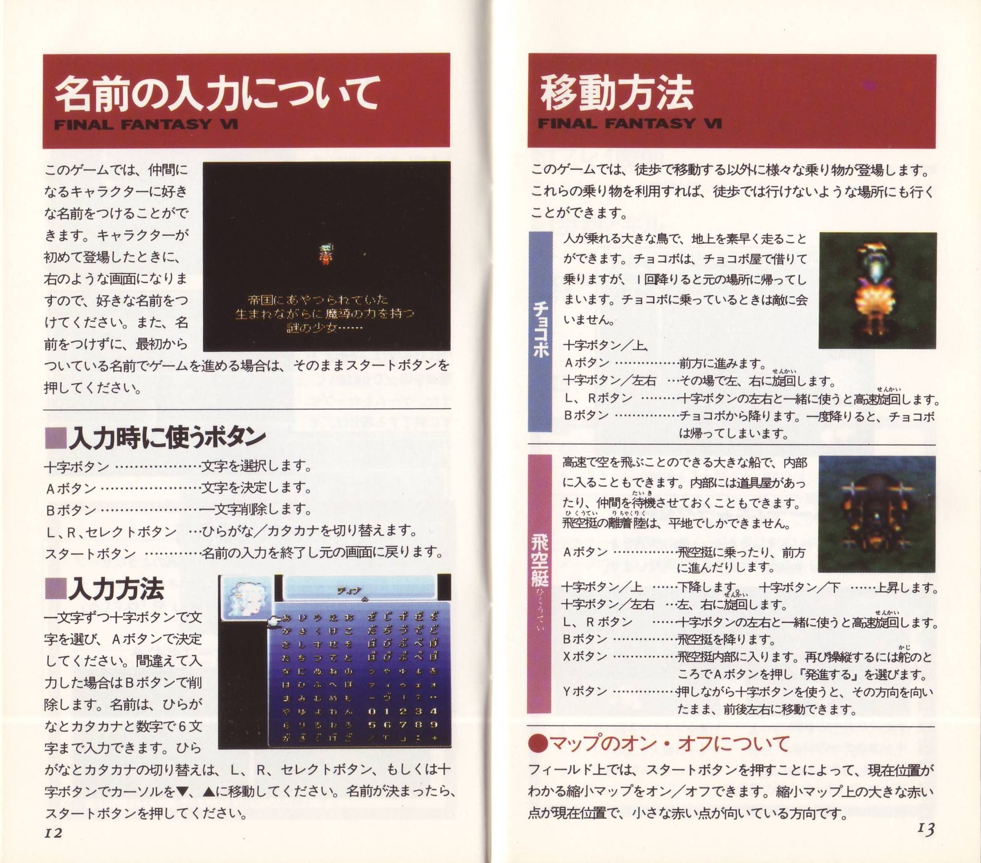 HOME > ファイナルファンタジー6攻略TOP > 取扱説明書