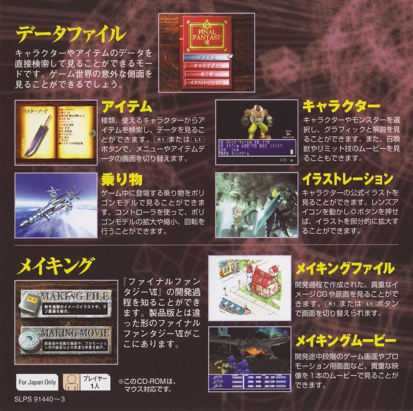 HOME > ファイナルファンタジー7攻略TOP > 取扱説明書