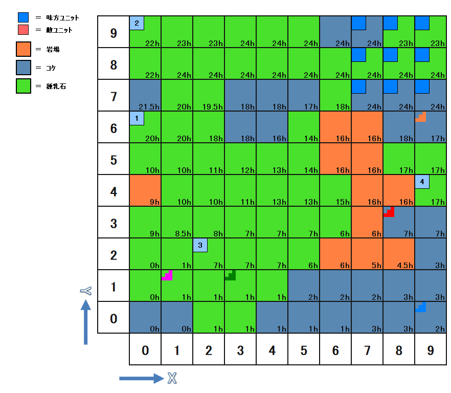 | X座標:2 Y座標:2 |