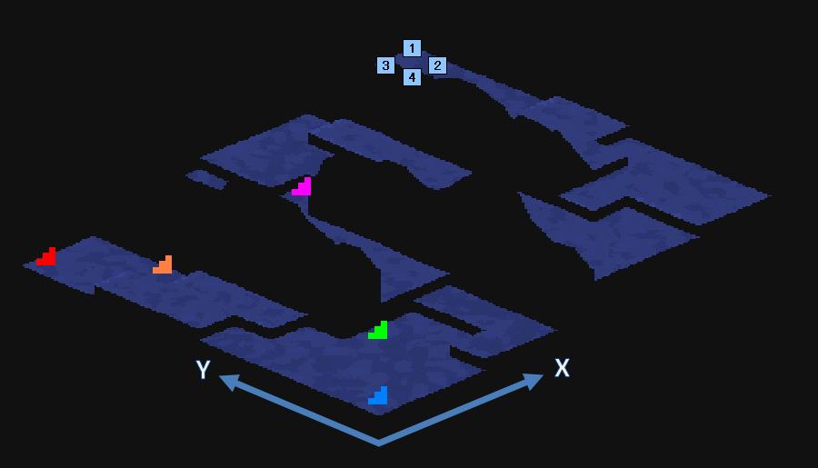 | マップ(階段とアイテムの位置) アイテム位置は数字アイコン/階段は階段アイコンで記している |