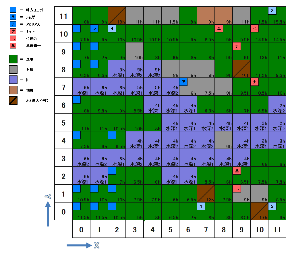 | 座標 | キャラ | パラメータ | 装備 | アビリティ | Wep.Power | AT | C-EV | S-EV | A-EV | ||
