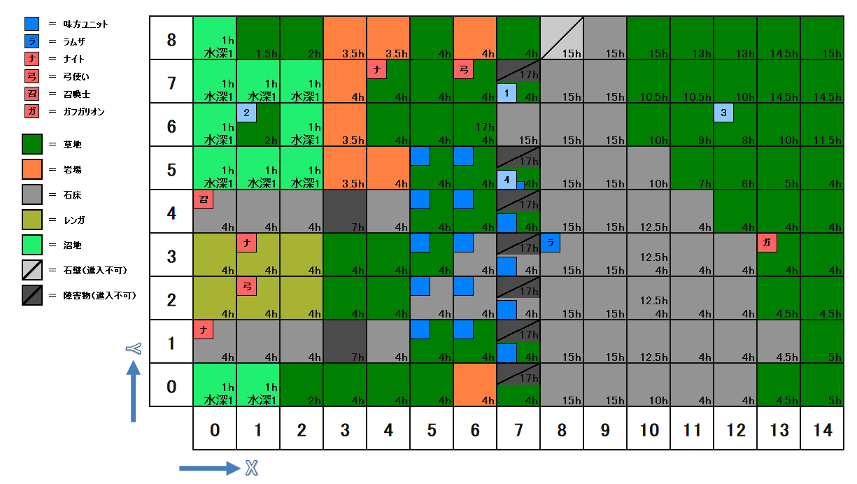 | 座標 | キャラ | パラメータ | 装備 | アビリティ | Wep.Power | AT | C-EV | S-EV | A-EV | ||