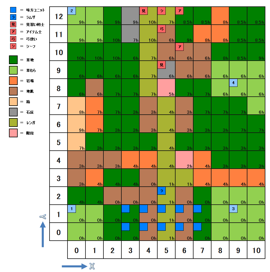 | 座標 | キャラ | パラメータ | 装備 | アビリティ | Wep.Power | AT | C-EV | S-EV | A-EV | ||