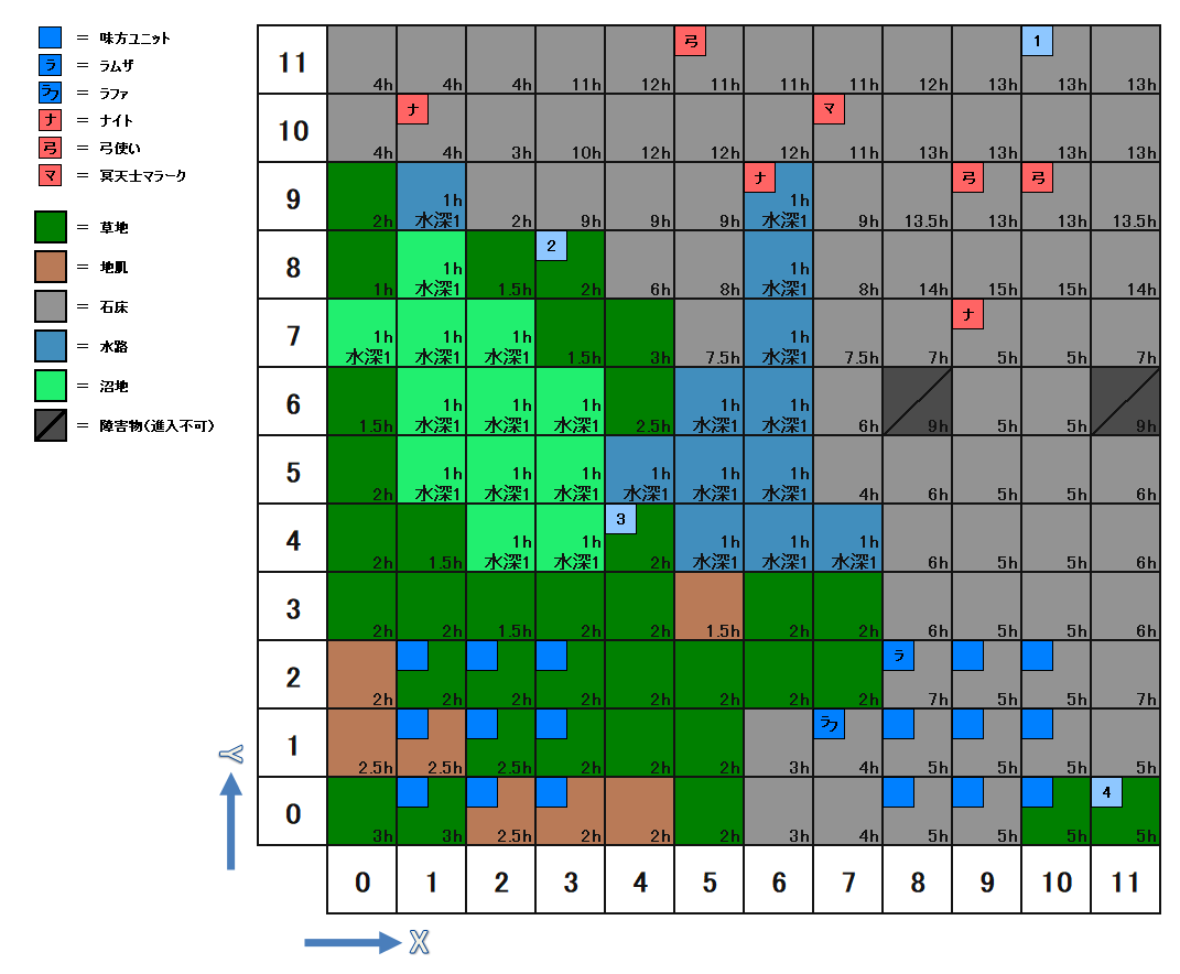 | 座標 | キャラ | パラメータ | 装備 | アビリティ | Wep.Power | AT | C-EV | S-EV | A-EV | ||