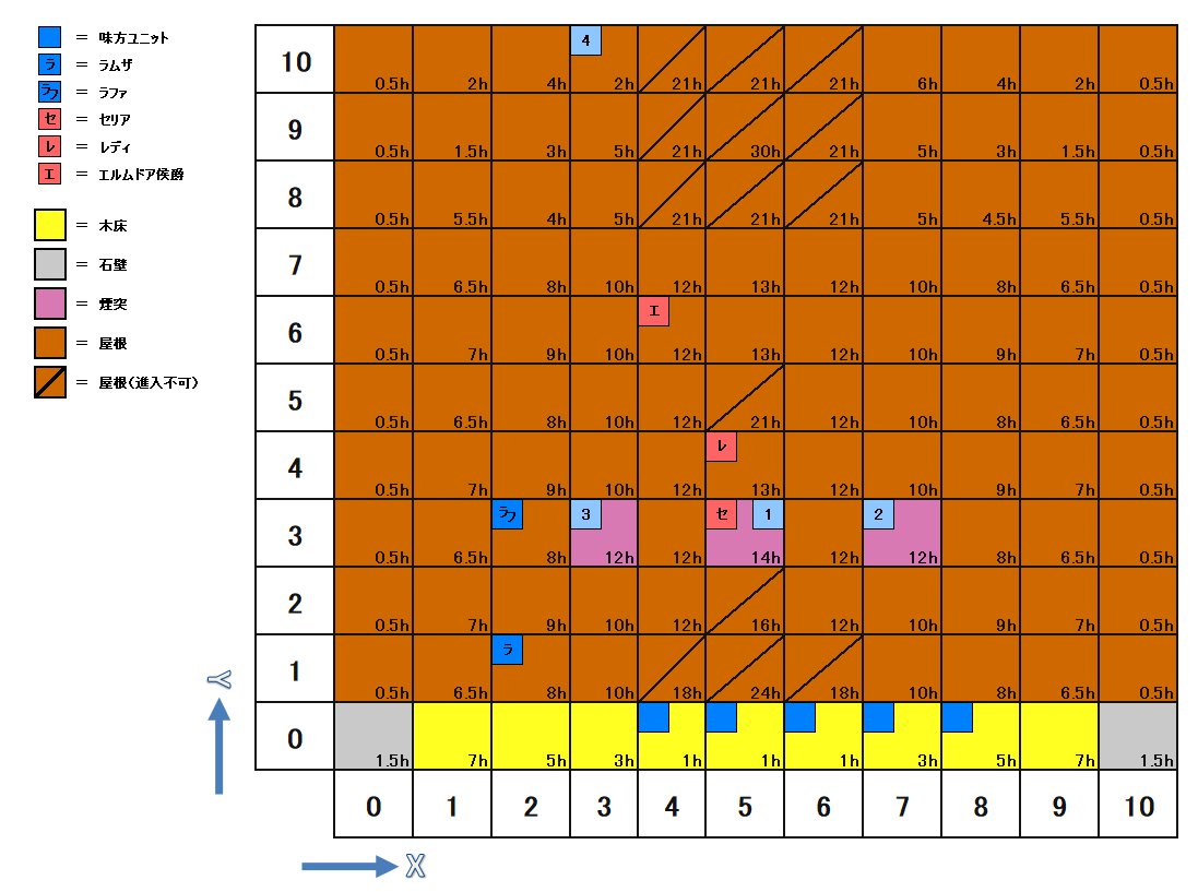 | 座標 | キャラ | パラメータ | 装備 | アビリティ | Wep.Power | AT | C-EV | S-EV | A-EV | ||
