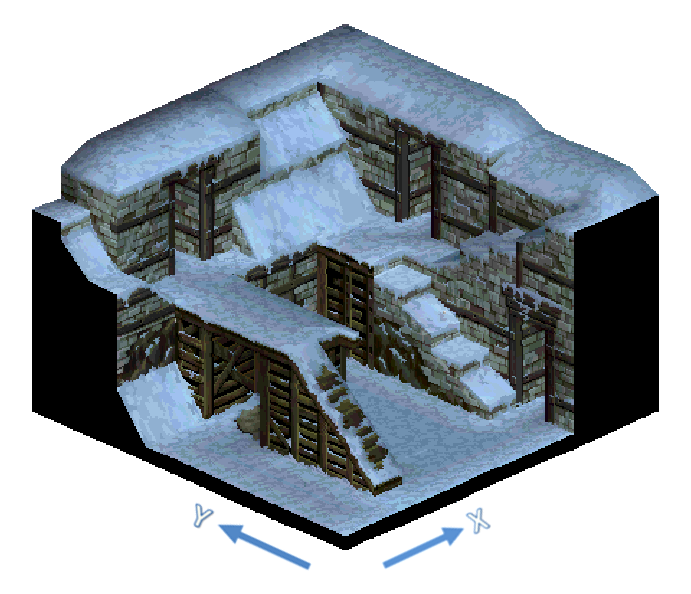 HOME > ファイナルファンタジータクティクス攻略TOP > エリアマップ【CHAPTER4】ゴルランドの炭鉱 地下三階【炭鉱都市ゴルランド】(アイテムと敵の配置)