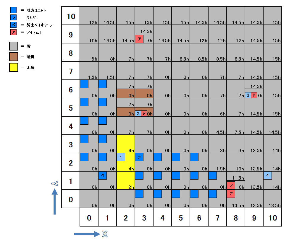 | 座標 | キャラ | パラメータ | 装備 | アビリティ | Wep.Power | AT | C-EV | S-EV | A-EV | ||