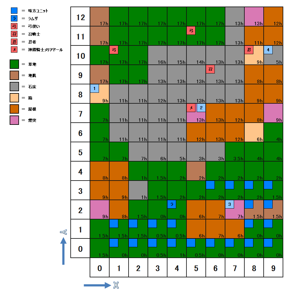 | 座標 | キャラ | パラメータ | 装備 | アビリティ | Wep.Power | AT | C-EV | S-EV | A-EV | ||
