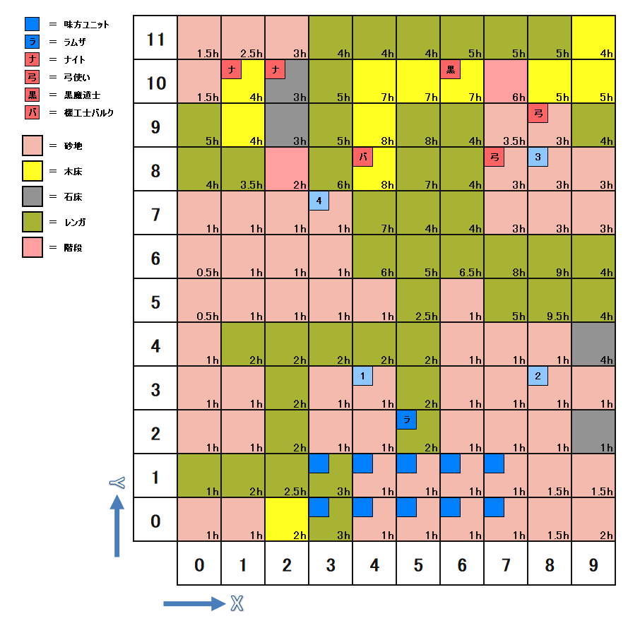 | 座標 | キャラ | パラメータ | 装備 | アビリティ | Wep.Power | AT | C-EV | S-EV | A-EV | ||
