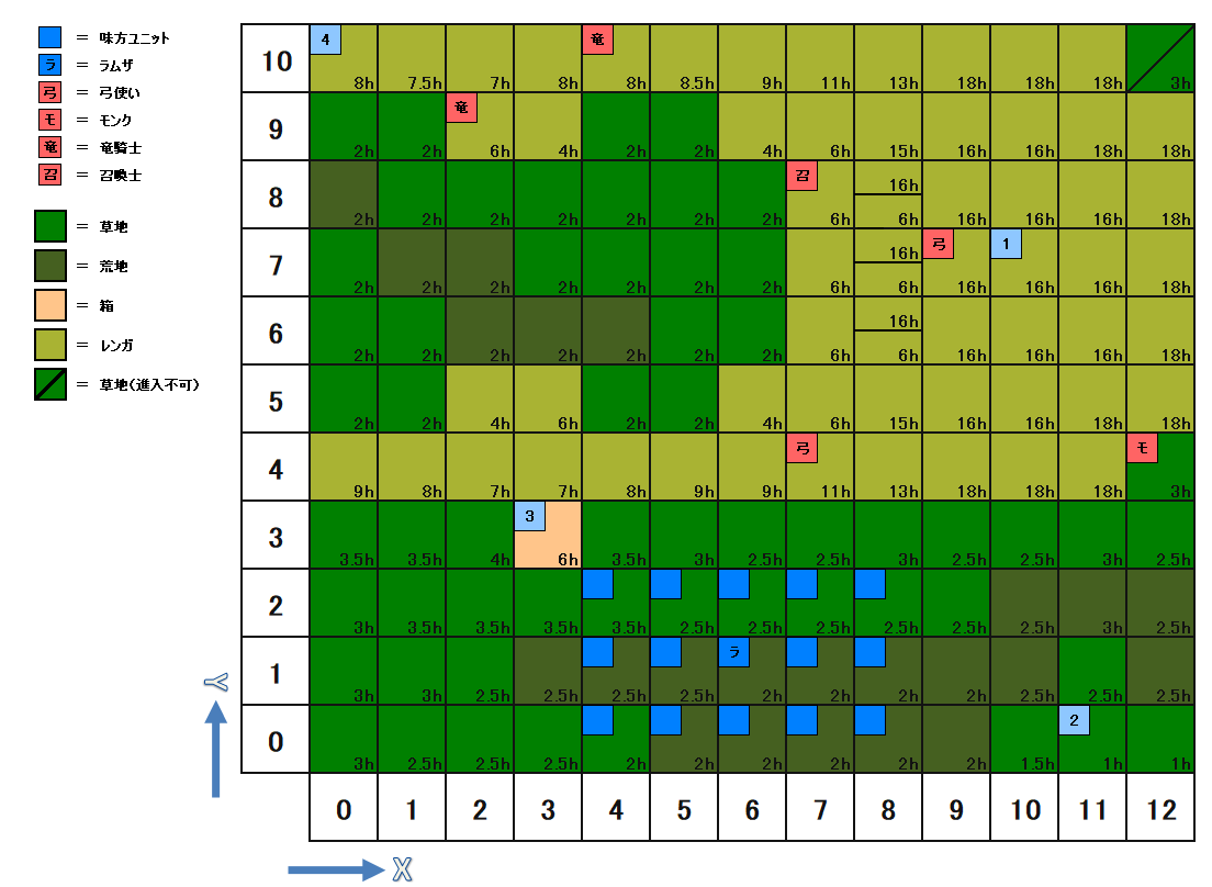| 座標 | キャラ | パラメータ | 装備 | アビリティ | Wep.Power | AT | C-EV | S-EV | A-EV | ||