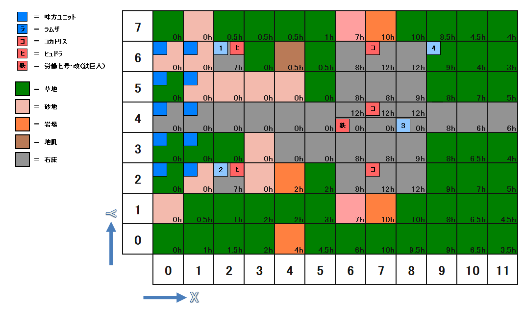 | 座標 | キャラ | パラメータ | 装備 | アビリティ | Wep.Power | AT | C-EV | S-EV | A-EV | ||