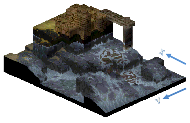 HOME > ファイナルファンタジータクティクス攻略TOP > エリアマップ【CHAPTER4】ポエスカス湖(アイテムと敵の配置)