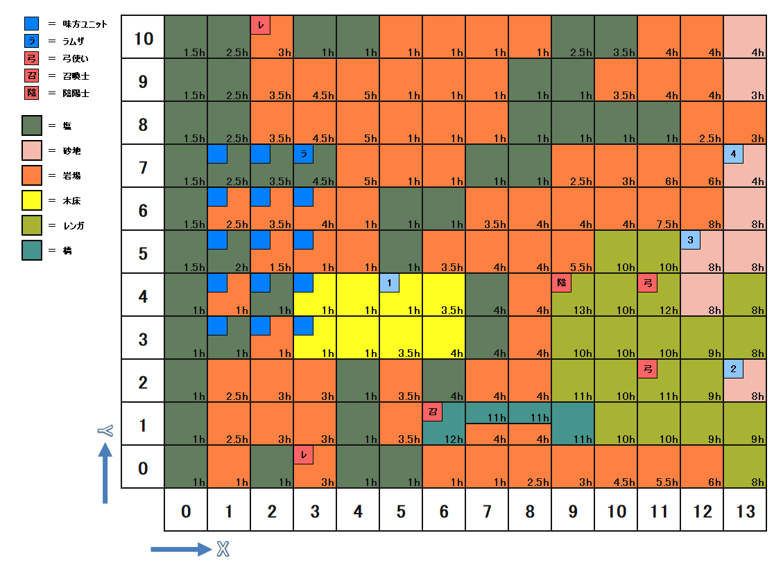 | 座標 | キャラ | パラメータ | 装備 | アビリティ | Wep.Power | AT | C-EV | S-EV | A-EV | ||