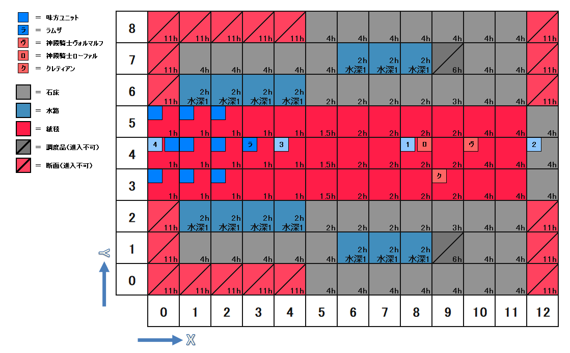| 座標 | キャラ | パラメータ | 装備 | アビリティ | Wep.Power | AT | C-EV | S-EV | A-EV | ||