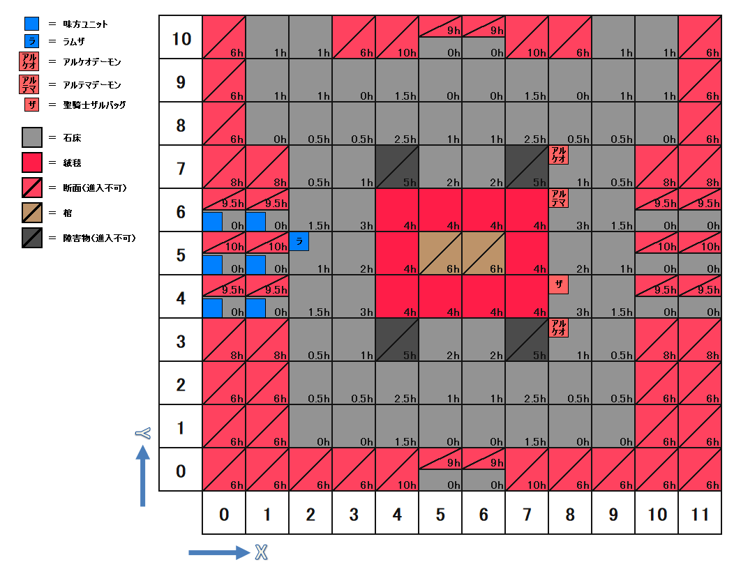 | 座標 | キャラ | パラメータ | 装備 | アビリティ | Wep.Power | AT | C-EV | S-EV | A-EV | ||