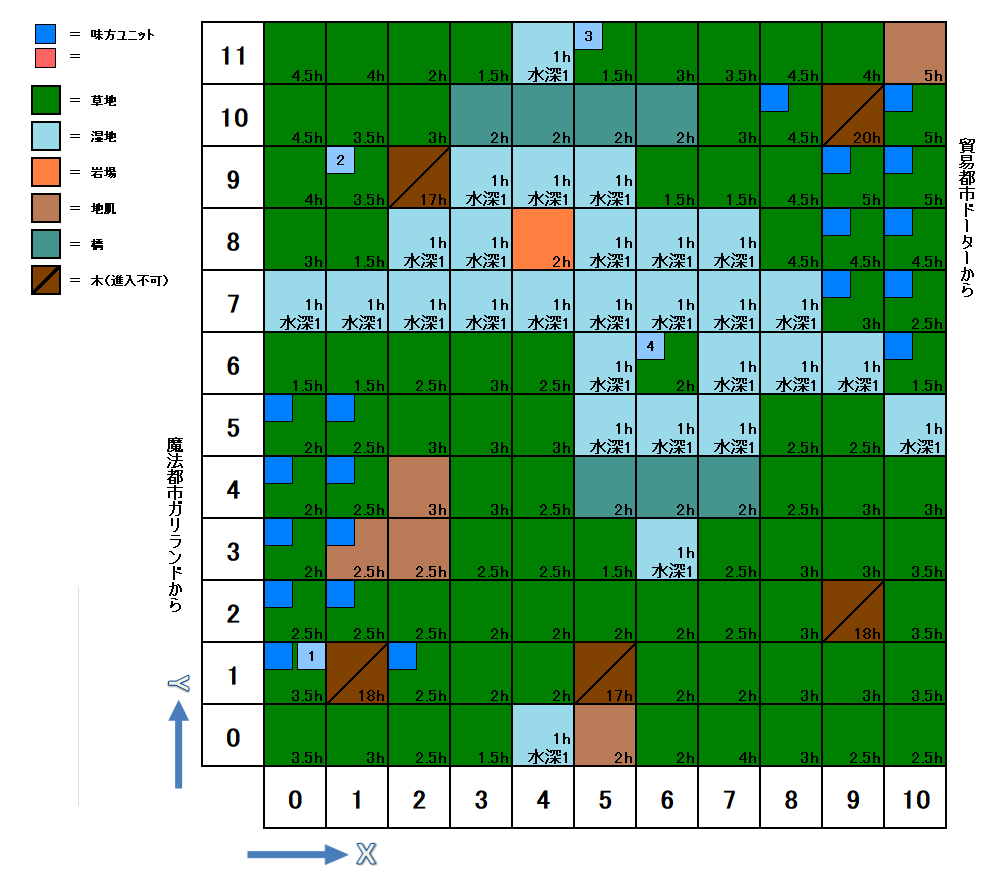 HOME > ファイナルファンタジータクティクス攻略TOP > ランダムバトルマップ スウィージの森(アイテムと敵の配置)