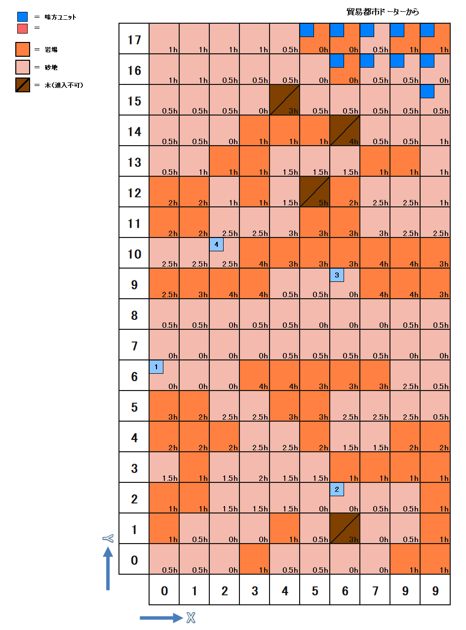 HOME > ファイナルファンタジータクティクス攻略TOP > ランダムバトルマップ ゼクラス砂漠(アイテムと敵の配置)