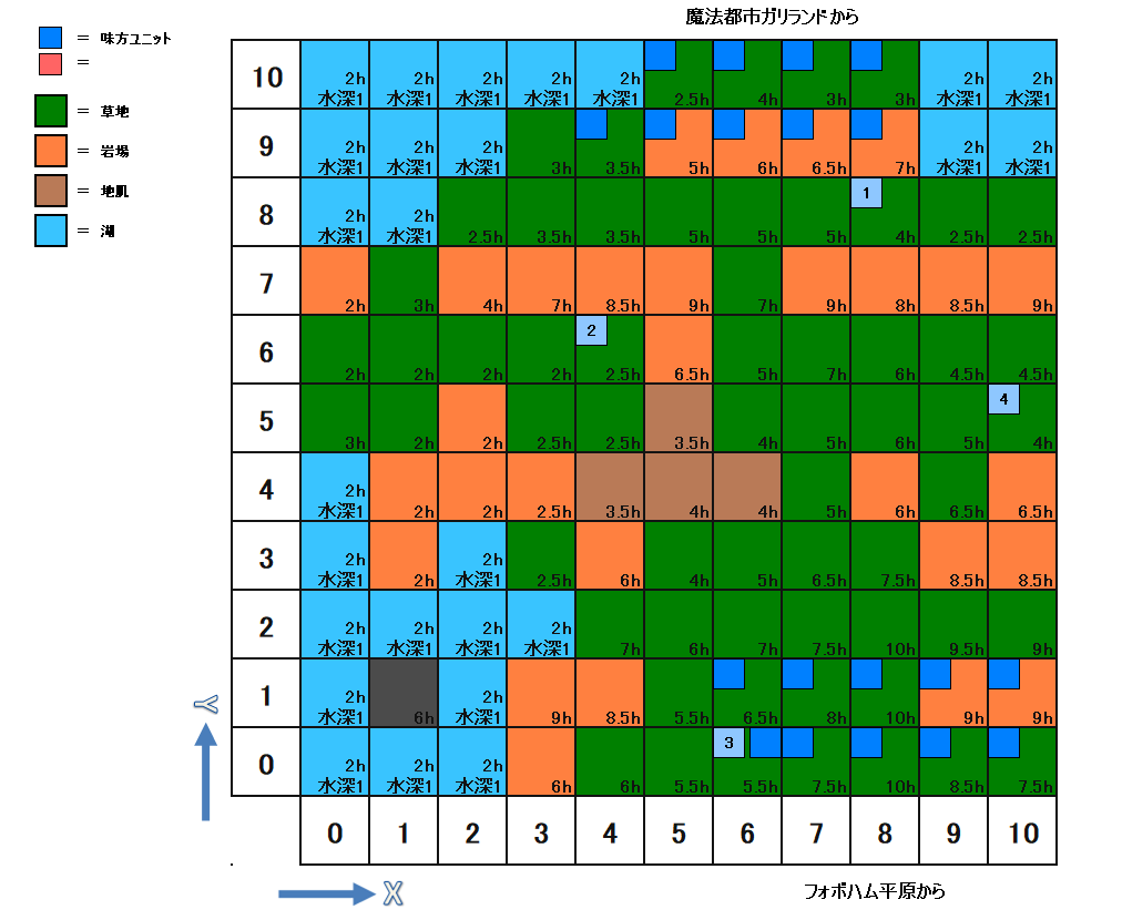 HOME > ファイナルファンタジータクティクス攻略TOP > ランダムバトルマップ レナリア台地(アイテムと敵の配置)