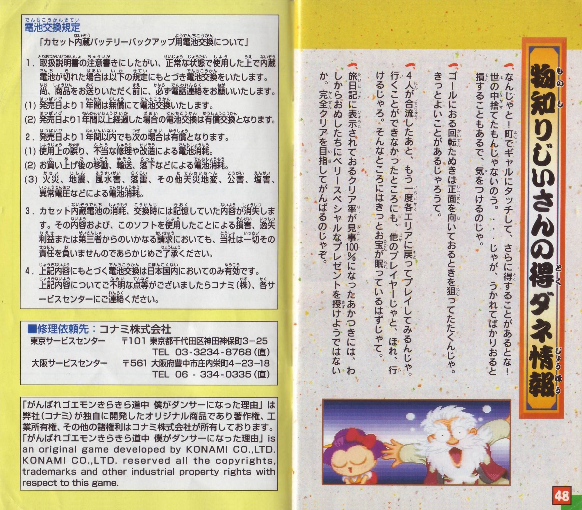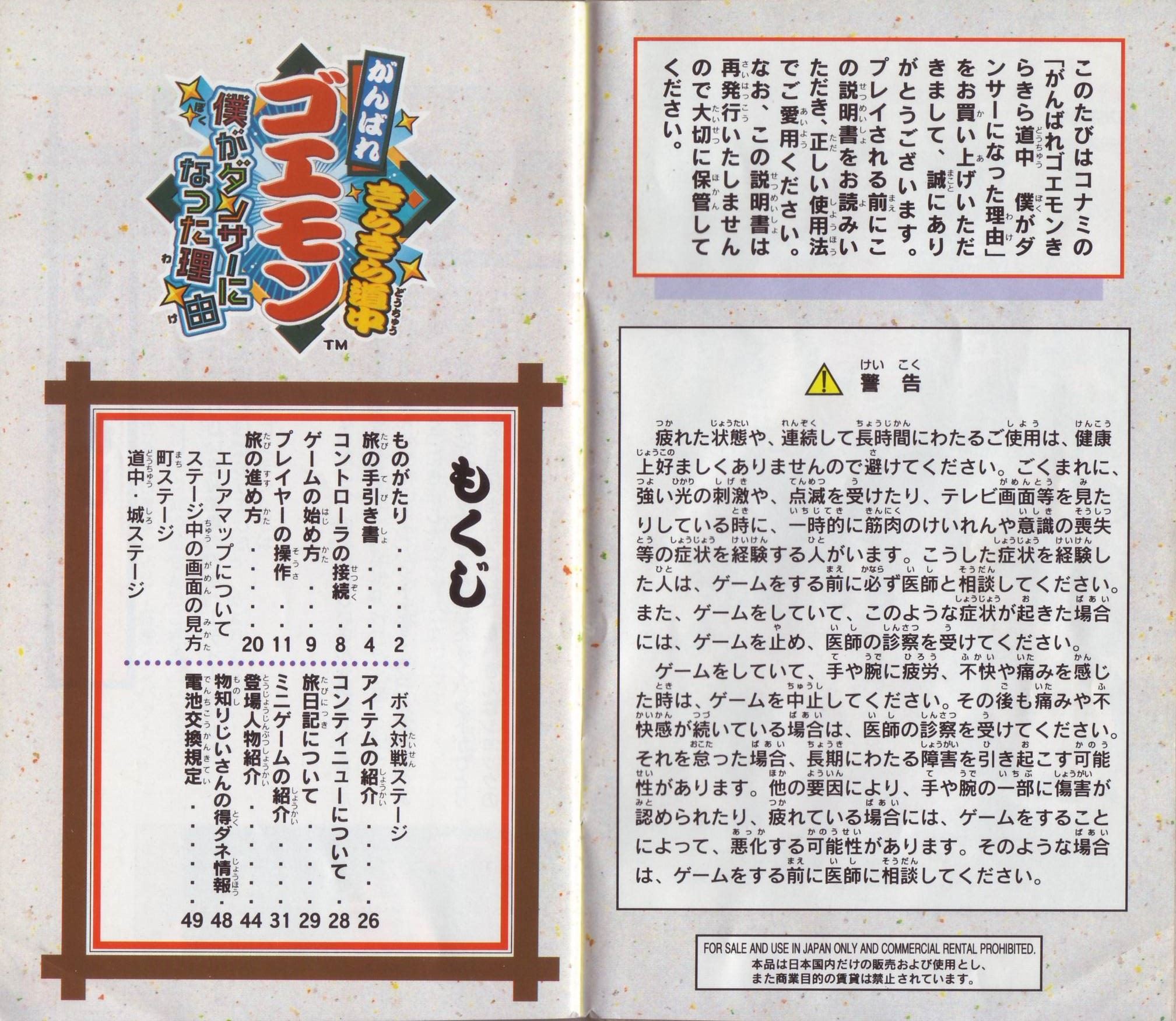 HOME > がんばれゴエモン きらきら道中 僕がダンサーになった理由 攻略TOP > 取扱説明書