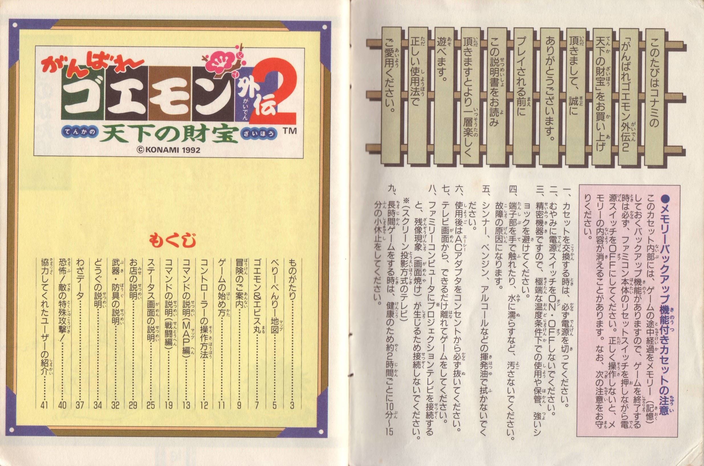 がんばれゴエモン2 外伝 天下の財宝攻略 取扱説明書を掲載しています。| 説明書|テキスト |