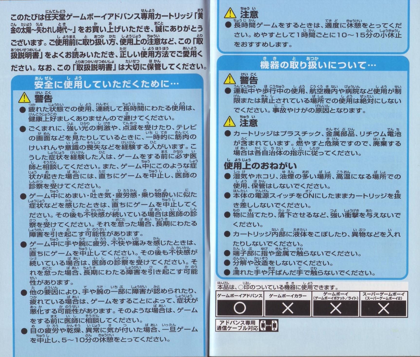 HOME > 黄金の太陽 失われし時代攻略TOP > 取扱説明書