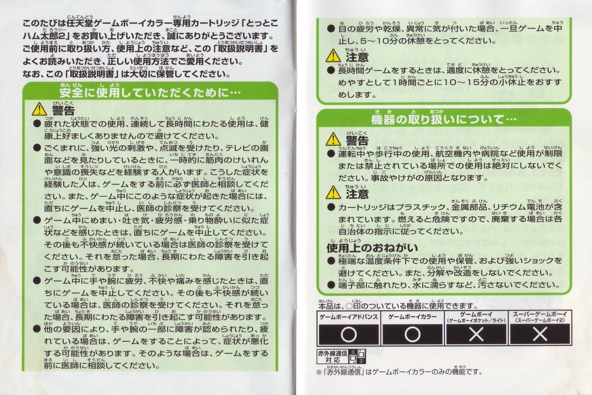 HOME > とっとこハム太郎2 ハムちゃんず大集合でちゅ 攻略TOP > 取扱説明書