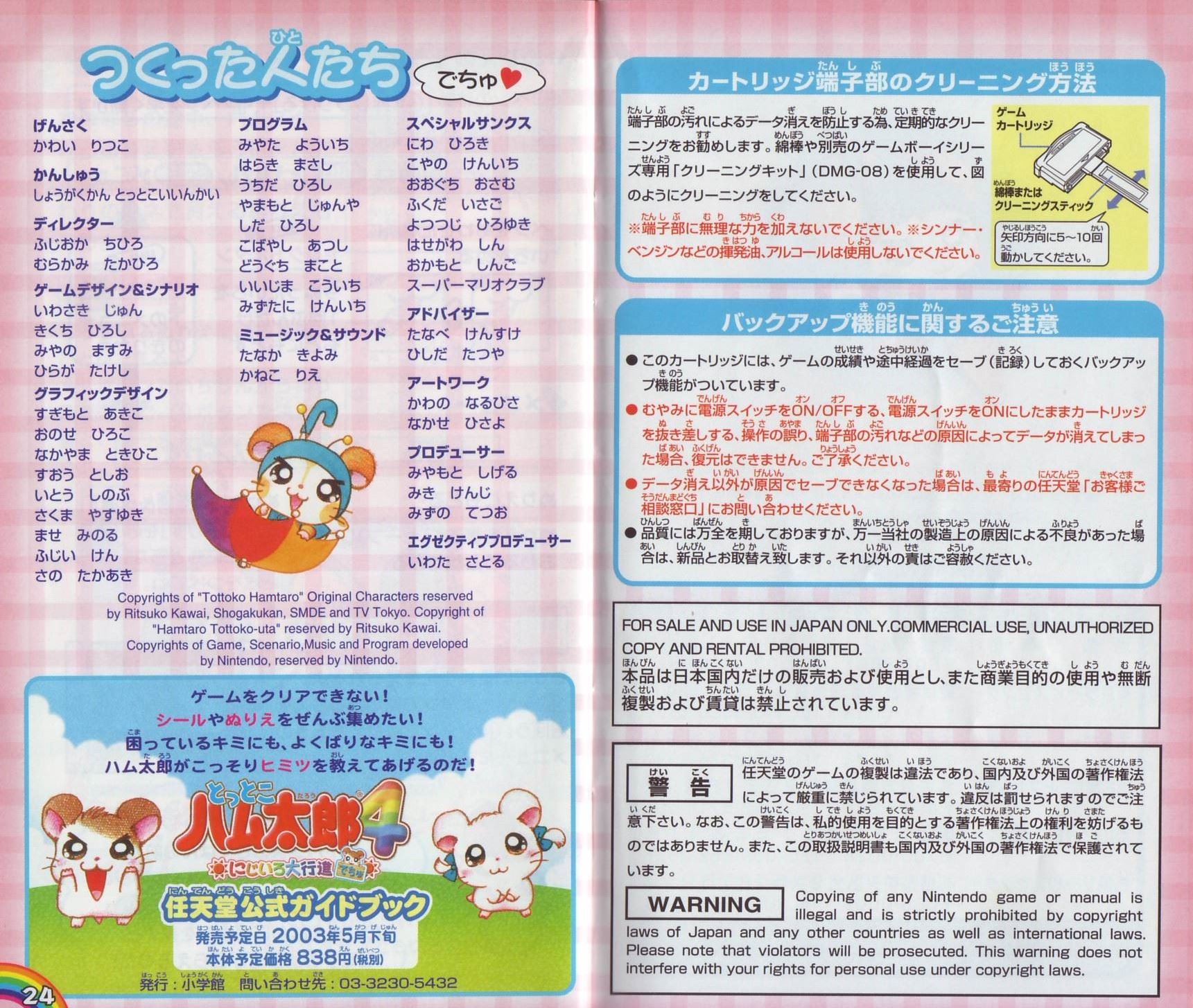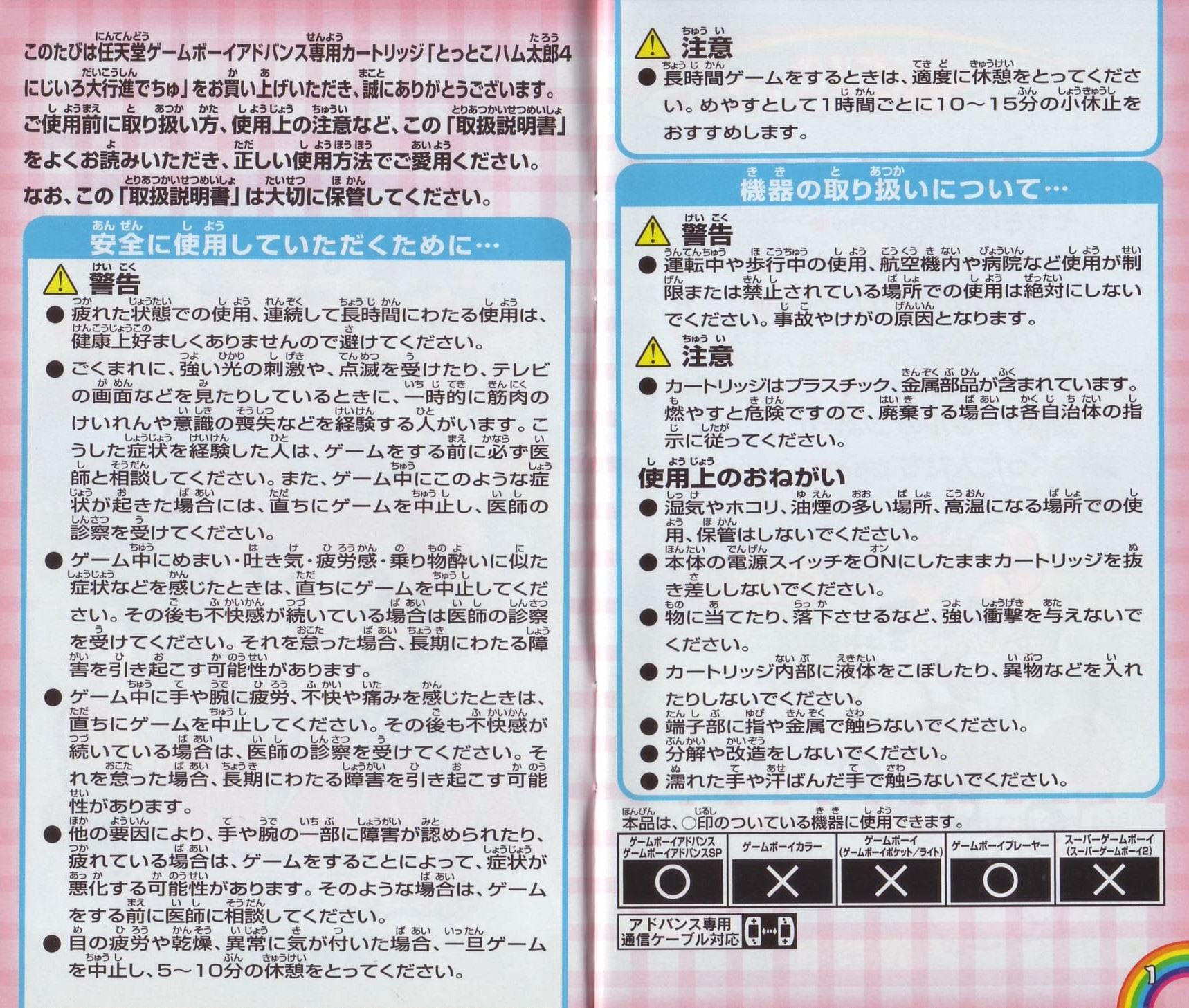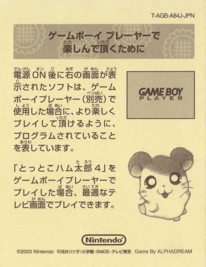 HOME > とっとこハム太郎4 にじいろ大行進でちゅ 攻略TOP > 取扱説明書
