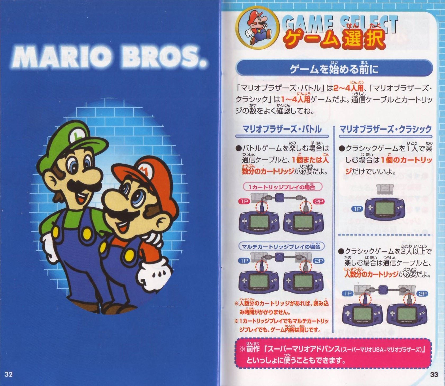 HOME > スーパーマリオアドバンス2攻略TOP > 取扱説明書