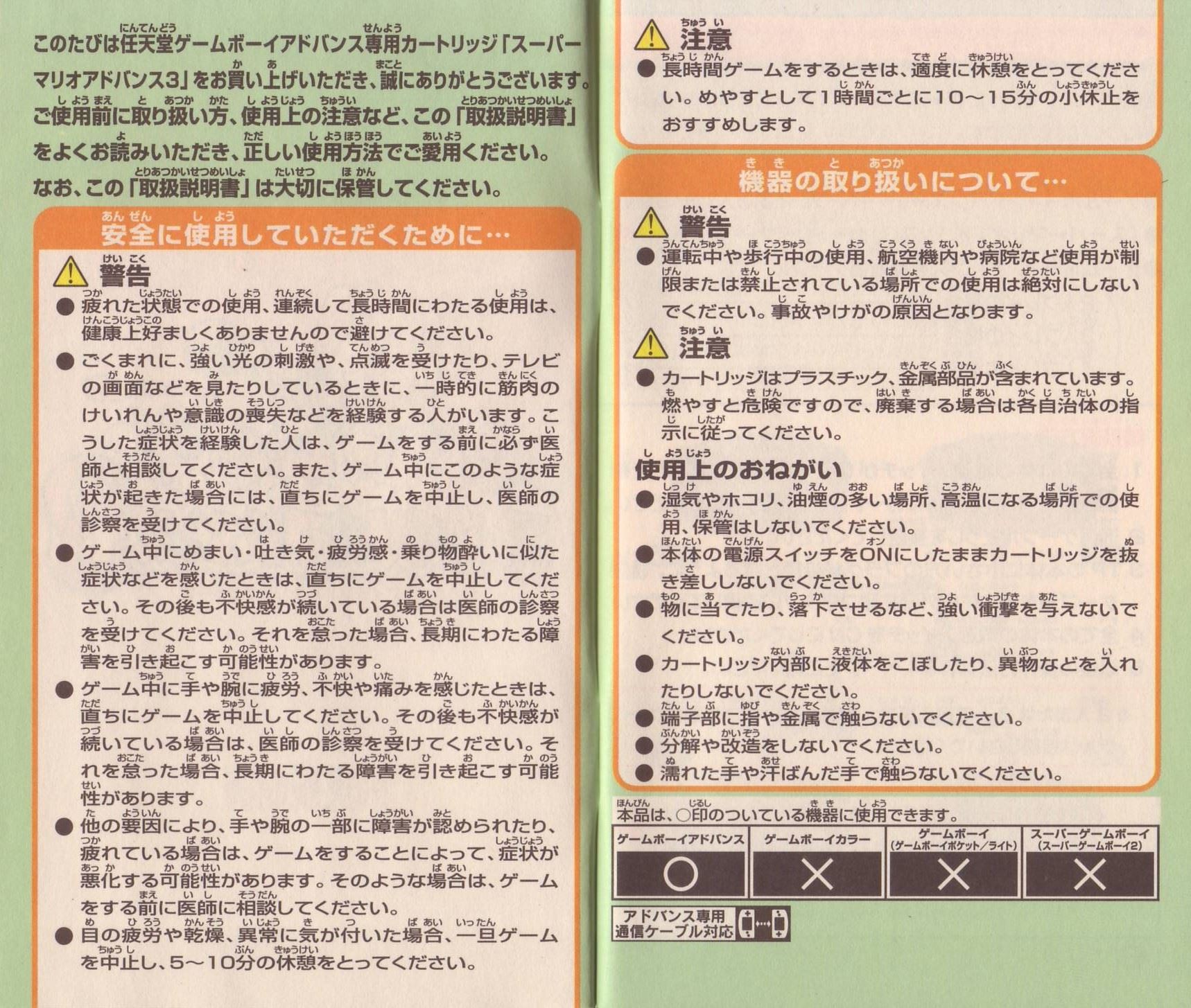 HOME > スーパーマリオアドバンス3攻略TOP > 取扱説明書