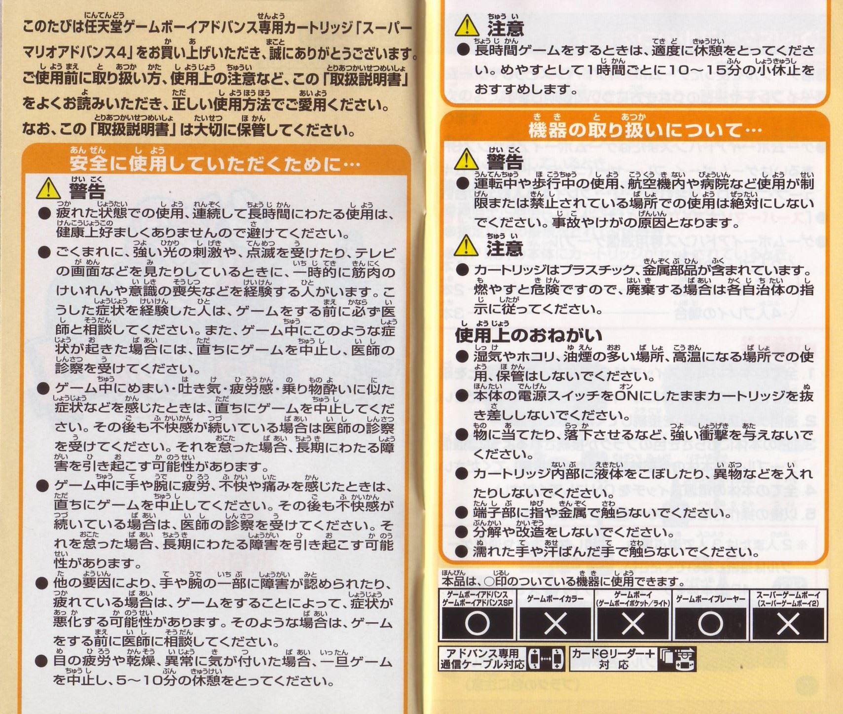 HOME > スーパーマリオアドバンス4攻略TOP > 取扱説明書